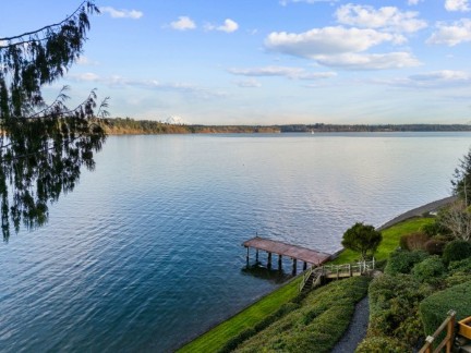 This Jake Berschauer custom masterpiece offers 150-degree views of Budd Inlet and Mt. Rainier from every room. Enjoy 89 feet of premium waterfront with a shared dock, sandy beach, and a rare flat, irrigated lawn. This high-performance estate features clear-grain cedar siding, a primary suite with a view-deck wired for a hot tub, and recent HVAC upgrades. Experience architectural integrity and world-class PNW vistas in this meticulously maintained one-owner legacy property.