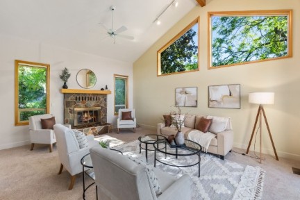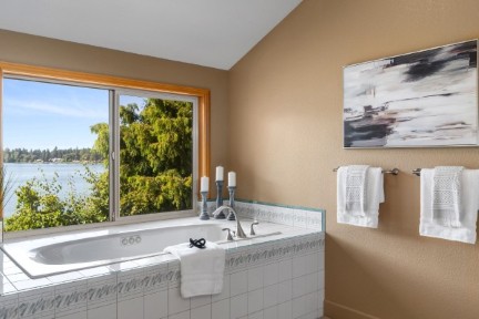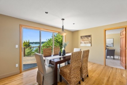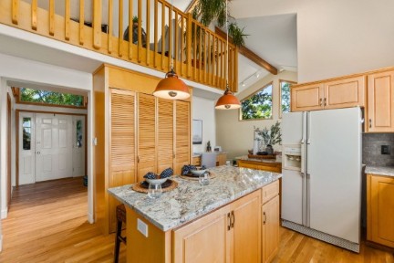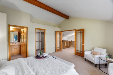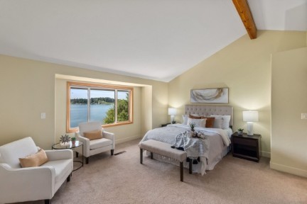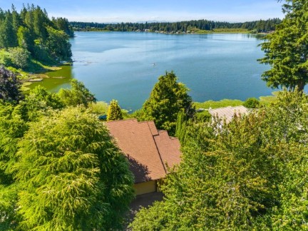 You will love your waterfront lifestyle from this one-owner custom-built lakefront home on quiet Pattison Lake! Easy access to water's edge. In a neighborhood of fine homes. Handsome curb appeal. Mature, low-maintenance grounds with a spacious view deck. Above-average privacy! Three car garage and wired for generator. Vaulted ceilings and walls of windows not only bring the outside indoors, but allow for light and bright daily living! Generous use of hardwood floors. Updated kitchen with granite, island, gas cooktop, and maple cabinets. Private primary suite with WI closet and 5-piece bathroom with jetted tub. Den with built-in bookshelves. Spacious mud room with dog bathing facility. Views and more views. Private community beach steps away.