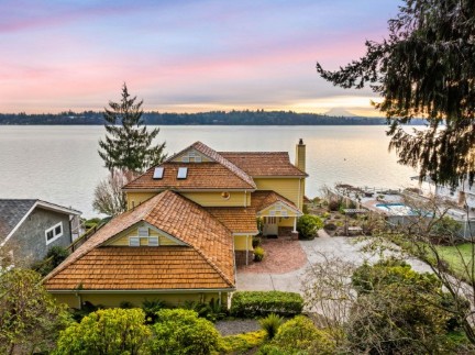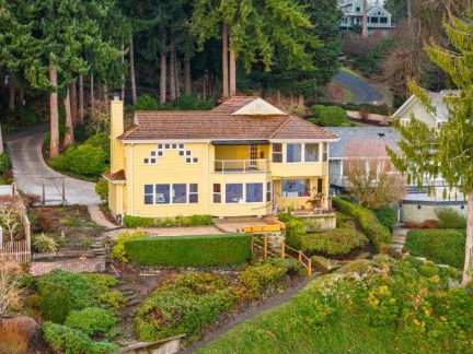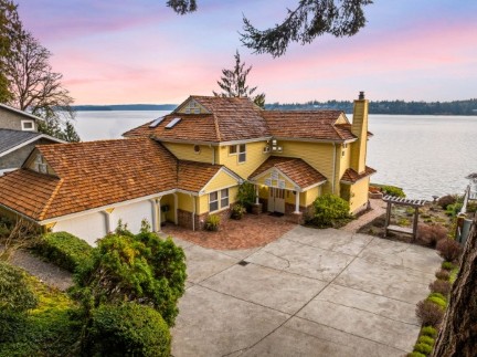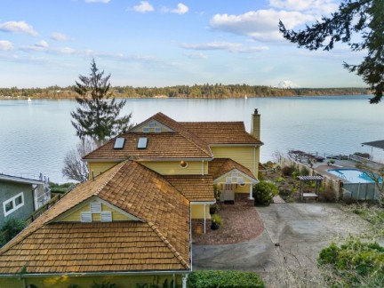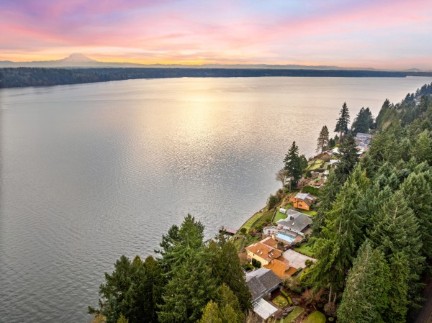 This Jake Berschauer custom masterpiece offers 150-degree views of Budd Inlet and Mt. Rainier from every room. Enjoy 89 feet of premium waterfront with a shared dock, sandy beach, and a rare flat, irrigated lawn. This high-performance estate features clear-grain cedar siding, a primary suite with a view-deck wired for a hot tub, and recent HVAC upgrades. Experience architectural integrity and world-class PNW vistas in this meticulously maintained one-owner legacy property.